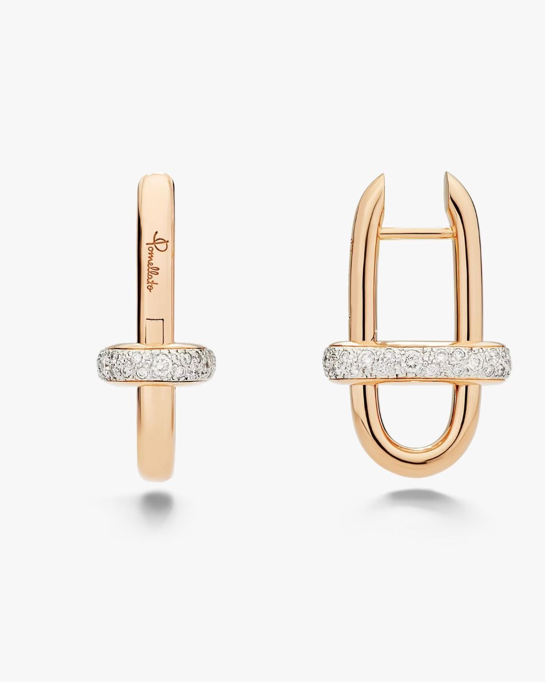 Experience the allure of Iconica – where Milanese design meets contemporary elegance, and every jewel becomes an emblem of empowerment. Each creation is a tribute to the unparalleled skills of Pomellato’s master artisans, defining Iconica’s uniquely powerful character. These Iconica earrings reinterpret the classic chain link as a sleek, modern statement in rose gold. For everyday elegance, each earring features a single link illuminated by brilliant white diamonds, set in Pomellato’s signature irregular pavé on white rhodium-plated rose gold. The refined detail adds a touch of dynamic light, inviting you to celebrate strength and femininity in your daily style.